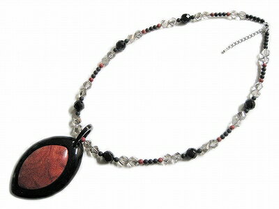 黒水牛枠のアフリカ珊瑚 ネックレス (のし等ギフト対応無料) 縦73ミリ×横46ミリの大ぶりペンダントトップ 51センチのオニキス クリスタル サンゴの竿で首元を彩ります