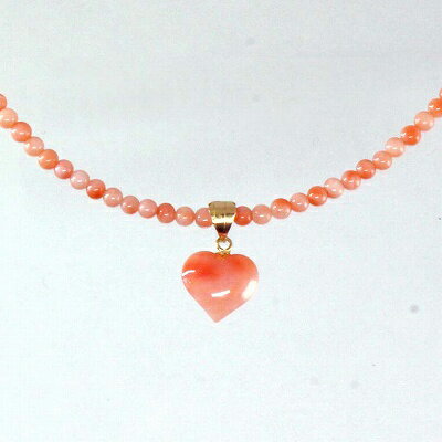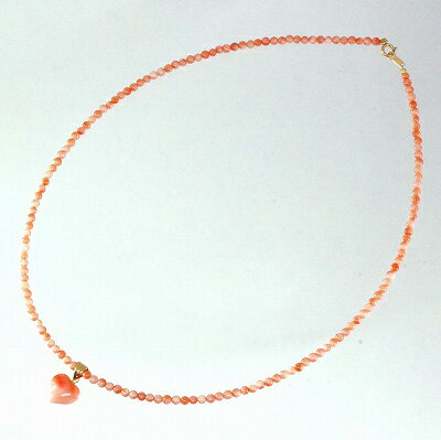 深海珊瑚約2.9ミリの小玉にハートのペンダントトップを付けた珊瑚ネックレスです。
