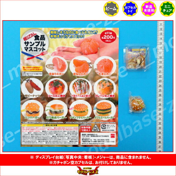 【超リアル!食品サンプルマスコット 美味しそうなのに食べられない!? 本物そっくりマスコット より2種】 大好評の食品サンプルシリーズから、今度は超リアルでおいしそうな本物そっくりのマスコットが登場!! ハンバーガーはボールチェーン付きで、柿ピーナッツはカニカンストラップ付。